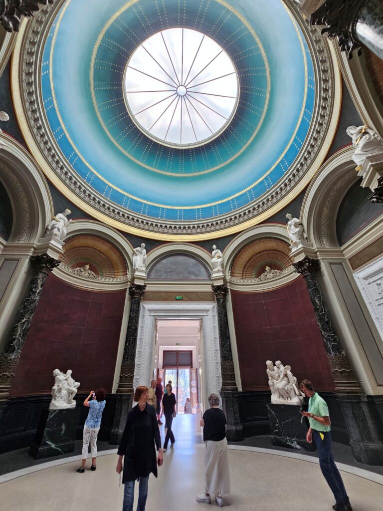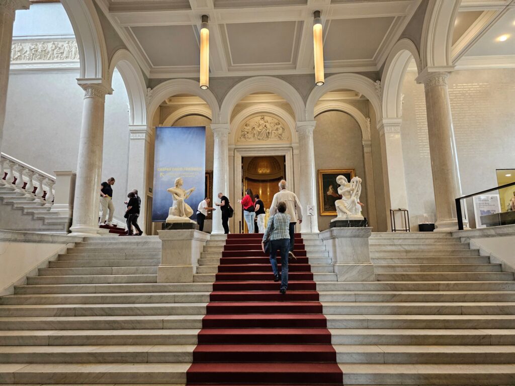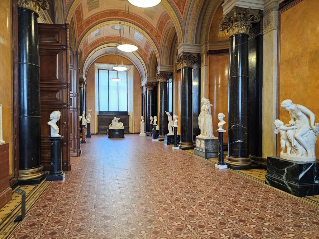 The interior continues the Gesamtkunstwerk — the total artwork — that defines the best 19th-century museum buildings. The entrance foyer and main stairwell are surrounded by a frieze painted by Otto Geyer evoking the museum as a shrine of the German cultural nation. The rooms are high-ceilinged and generously proportioned, with natural light where possible and a spatial logic that feels considered and calm. The building survived damage during World War II but — remarkably — reopened as early as 1949, before many of the island’s other institutions. It underwent significant renovation in the early 2000s, reopening fully in 2001, and today it presents its collection in conditions that do justice to both the art and the architecture.