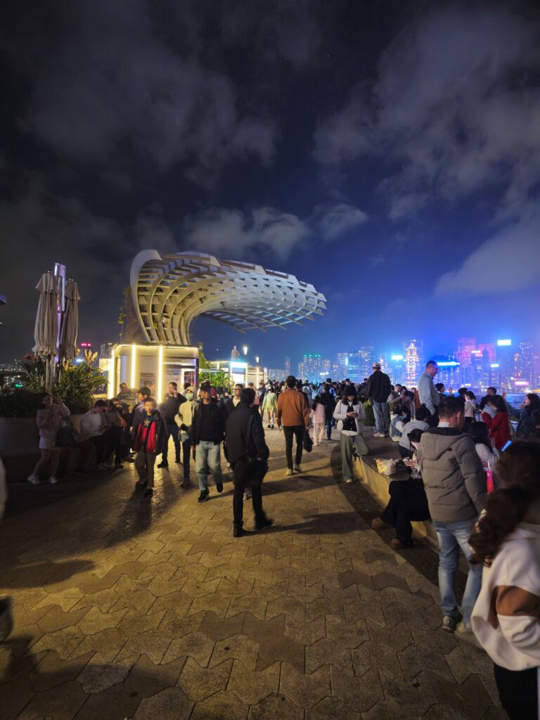 The harbor view communicates scale. The density of the towers across the water communicates intensity. The mix of people on the promenade — local families, visitors from across Asia and beyond, photographers with tripods, children running along the railing — communicates the city’s particular energy. And the Symphony of Lights at 8pm provides a structured moment of collective appreciation for the skyline that gives the first evening a satisfying endpoint.