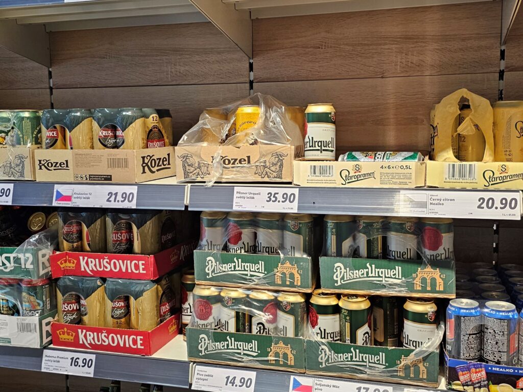 Of course, one cannot explore a Czech supermarket without acknowledging the beer section. Rows upon rows of locally brewed beers, including Staropramen, Kozel, and Pilsner Urquell, were available at shockingly low prices. A 500ml bottle often cost less than 25 CZK (around €1). Whether you’re a beer enthusiast or a casual traveler, this is a fantastic opportunity to sample authentic Czech brews without visiting a bar.