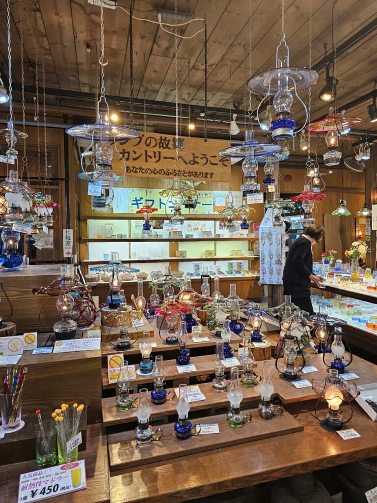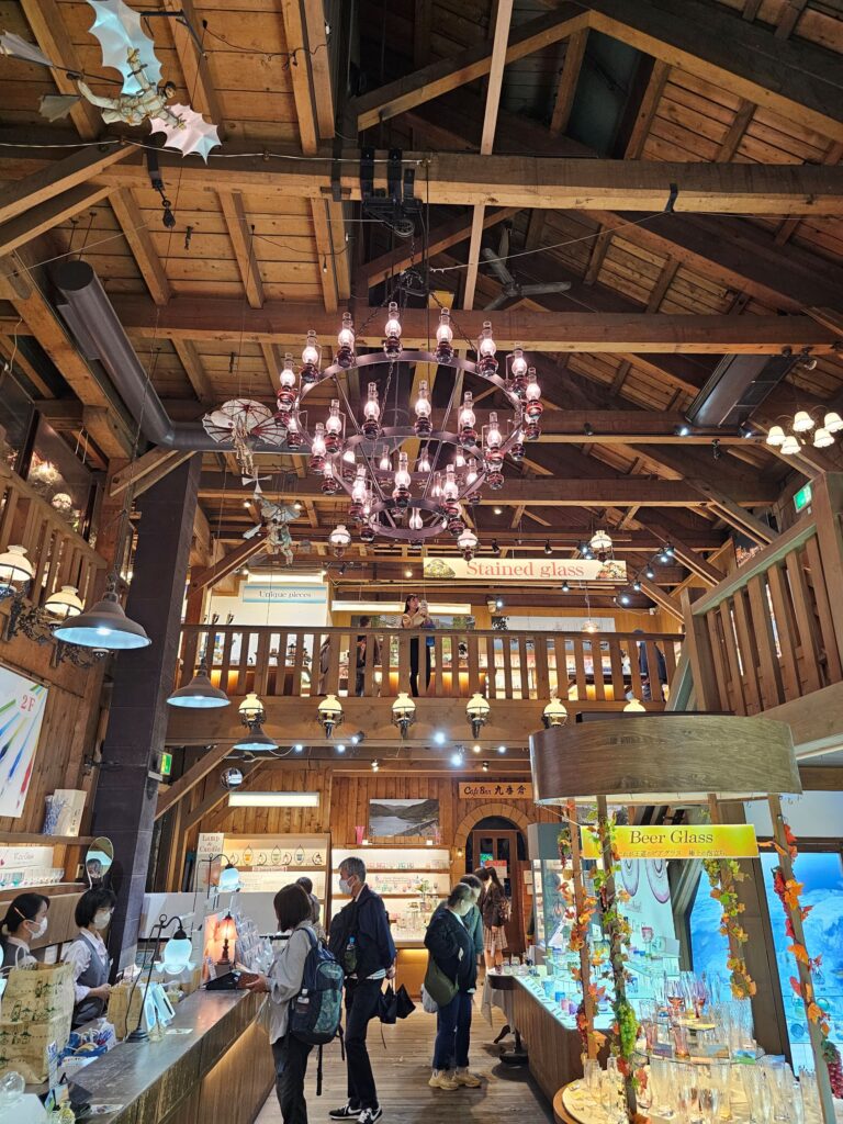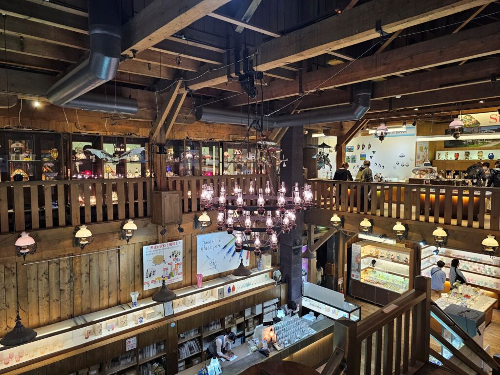 When I visited the Kitaichi Glass Outlet, it was a crisp afternoon in early winter. Snowflakes were falling lightly outside, and the warm glow of the lamps inside drew me in instantly. The first thing that caught my eye was the chandelier hall — hundreds of glass lamps illuminating the room like a scene from a fairytale. Each one shimmered differently, depending on the angle of light.