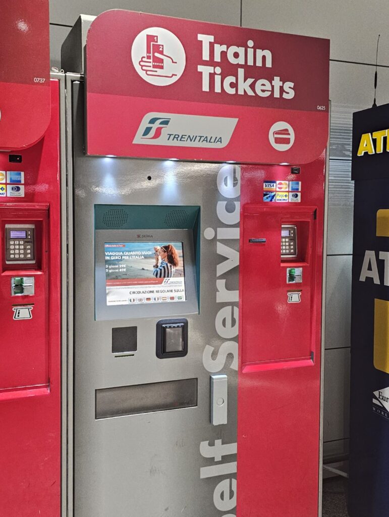 You have several options when it comes to purchasing tickets for the Leonardo Express. Automated Trenitalia ticket machines are located both in the train station and throughout key areas of the airport. These machines support a wide range of languages—including Italian, English, German, French, Spanish, Chinese, and Arabic—so international travelers can make their purchases with confidence. Tickets are also available at staffed ticket counters near the platforms, or from tabacchi shops (small convenience stores often found in Italian stations). For those who prefer to plan ahead, you can also purchase tickets online through Trenitalia, Trainline, and Omio.