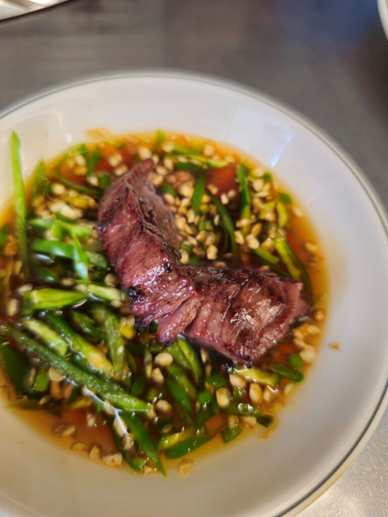As the meat grilled, the table filled with laughter, glasses of soju clinking, and the familiar rhythm of Korean BBQ: grill, flip, dip, wrap, eat. It’s a communal ritual that feels deeply ingrained in Korean culture, and Jeonbotdae-jip delivers it in the most authentic way.