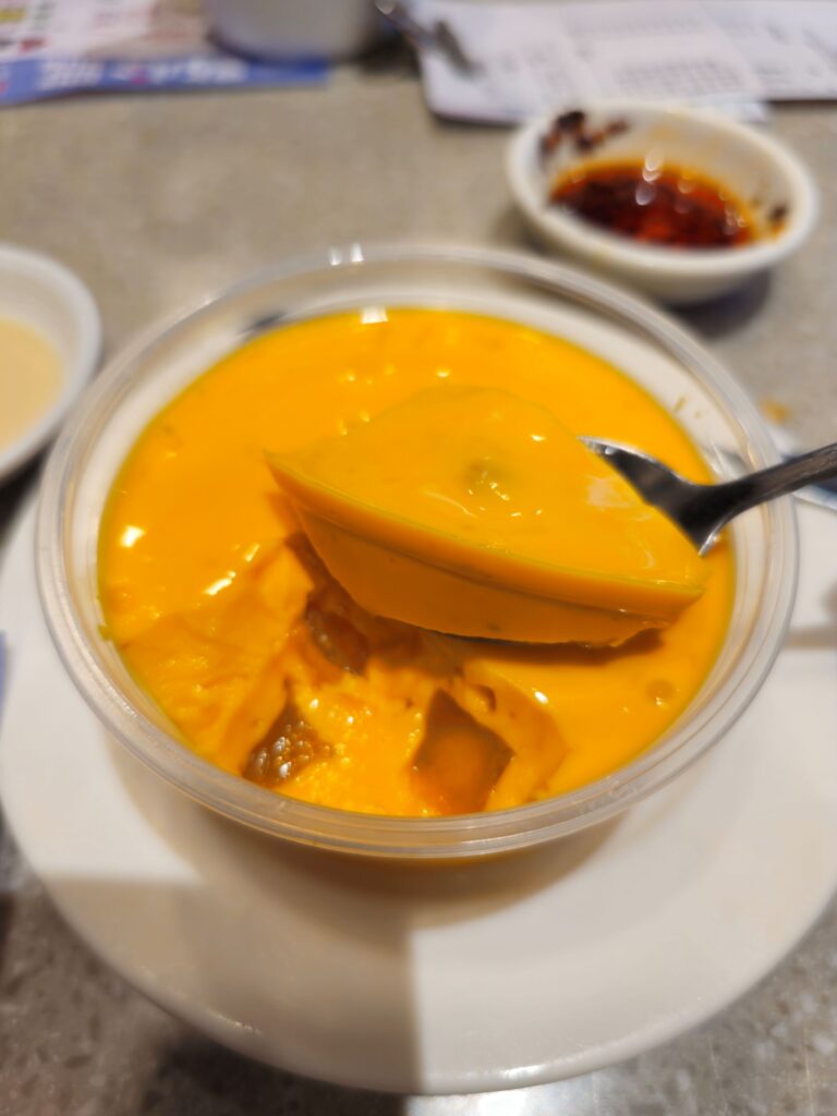 A dim sum staple that’s often overlooked in favor of more prominent dishes. One Dim Sum’s turnip cake is pan-fried to a crisp exterior with a soft, slightly sweet interior — the radish flavor is present without being overwhelming, and the texture contrast between the crisp outside and soft inside is well-executed.