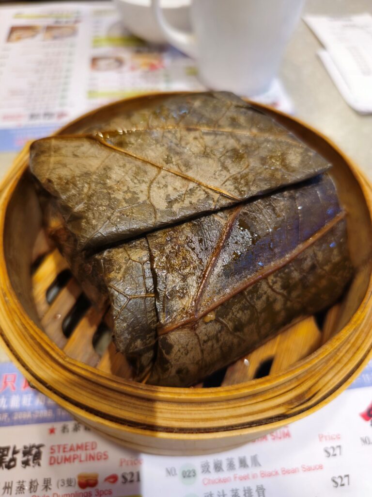 Glutinous rice with chicken, mushroom, and Chinese sausage wrapped in lotus leaf and steamed — one of dim sum’s most substantial dishes and one of the most satisfying when made well. One Dim Sum’s lo mai gai is generous in filling and properly steamed — the rice is sticky without being gluey, and the lotus leaf imparts the distinctive fragrance that makes this dish specific.