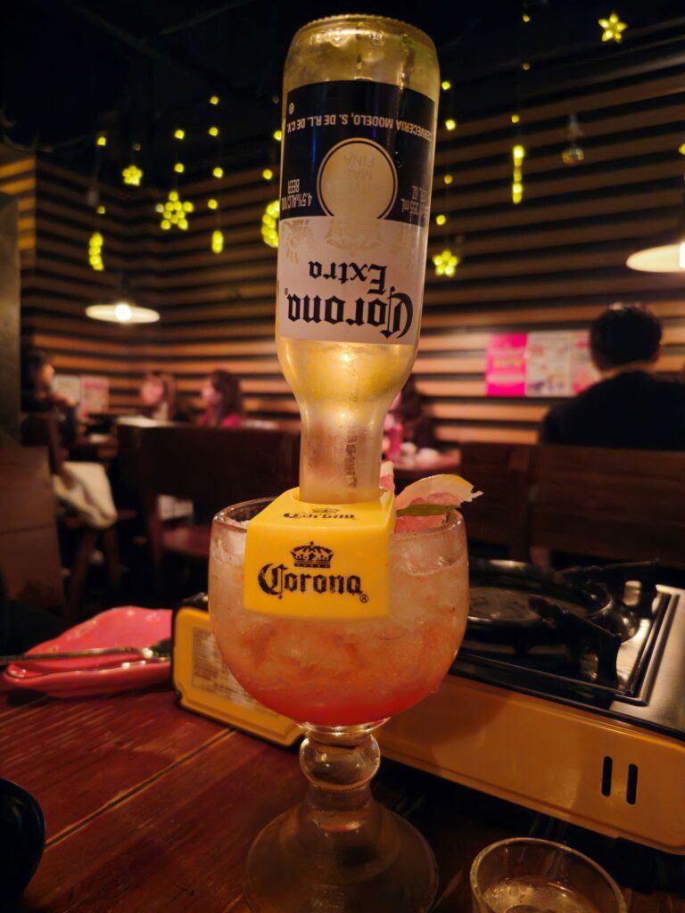 The somaek combination — soju mixed into beer — is available for those who want to experience the Korean drinking culture dimension of the meal. The mixing ratio varies by preference; the standard is approximately 3:7 soju to beer.