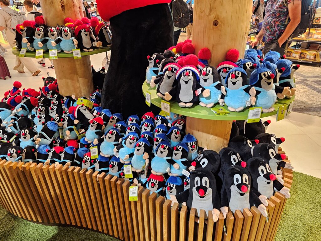 Many local products are available either inside duty-free or in specialized Czech souvenir shops within the departure area.