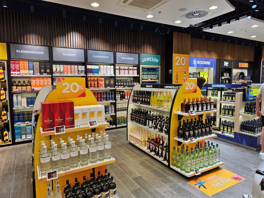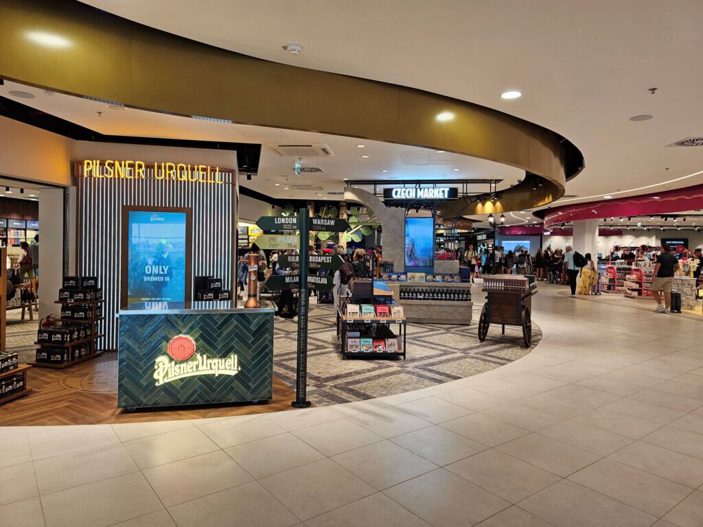 The main duty-free shop is operated by Aelia Duty Free and is located immediately after security screening. The store offers a wide selection of international luxury brands alongside Czech specialties.