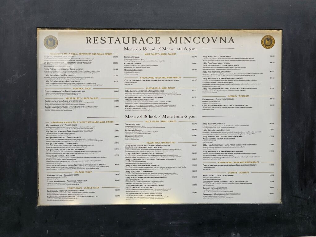 What adds to Restaurace Mincovna’s appeal is its reputation among locals. The restaurant was recommended to us by a Czech friend who lives in Prague, assuring us that it is not just a tourist stop but a place genuinely cherished by residents for its consistent quality. This local endorsement was clearly justified, as both the food and service exceeded expectations. It’s always encouraging to find a place that is appreciated by both tourists and locals alike—a sign that the restaurant doesn’t compromise on authenticity in favor of mass appeal. Our friend emphasized that the food remained true to Czech roots, and it was evident in every bite.