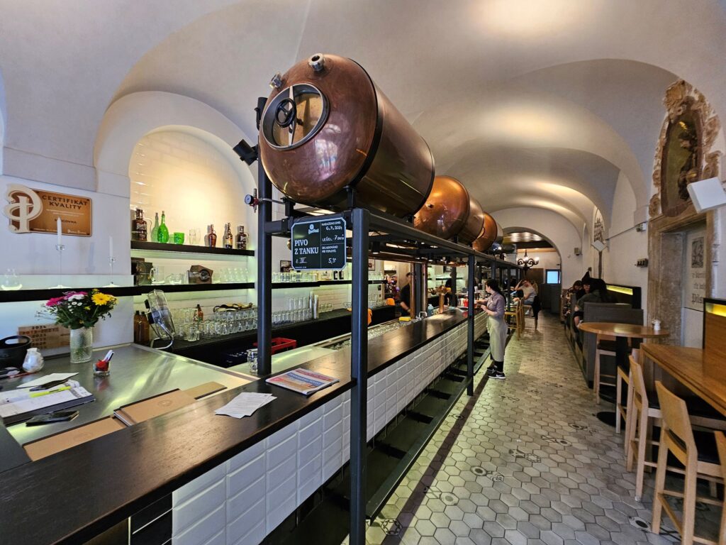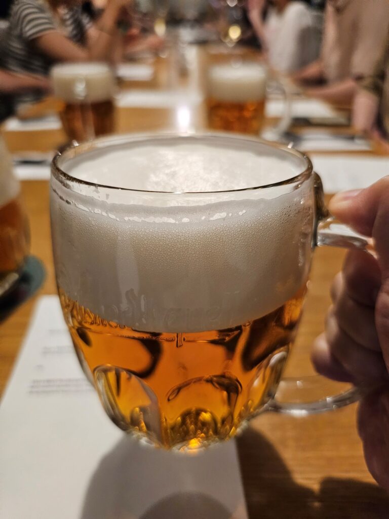 No Czech meal is complete without beer, and Restaurace Mincovna delivers with freshly tapped Pilsner Urquell tank beer served in chilled mugs. These unpasteurized beers are stored in large tanks to preserve their full flavor, offering a refreshing and crisp profile that complements the rich food. The freshly drawn beer has an especially clean and smooth finish—one that truly stood out during our visit.