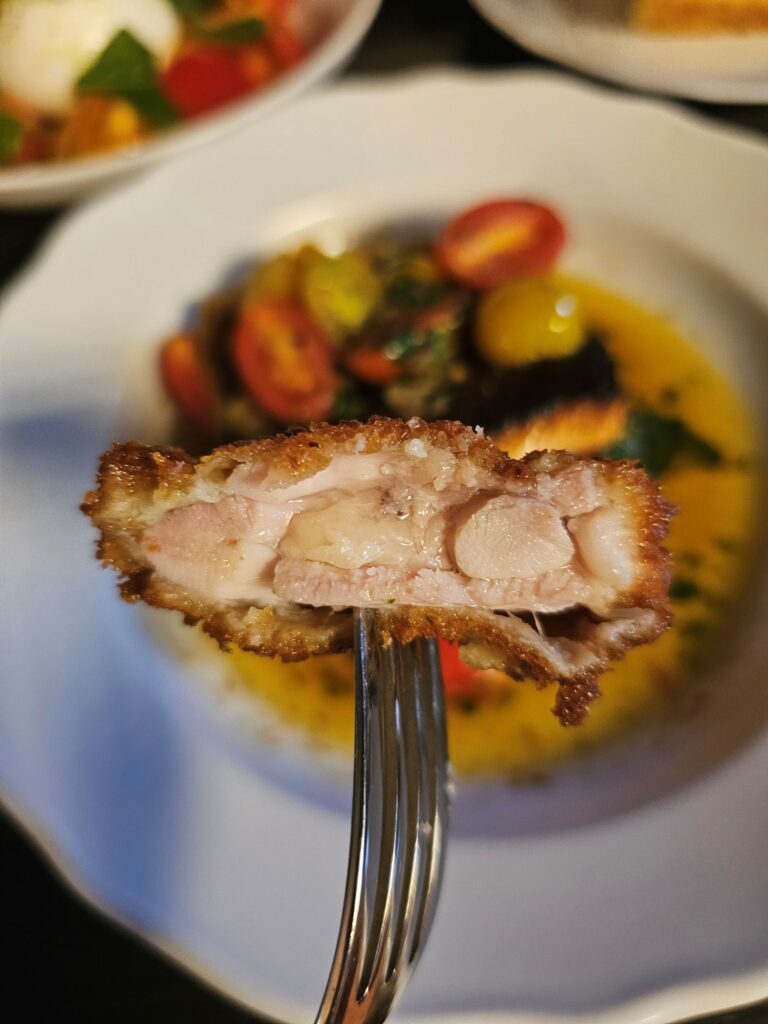 The crust was crisp but delicate, the chicken inside juicy and flavorful. The contrast between the crunchy coating and the melting butter was pure indulgence. This dish — so simple in idea — was executed with the same precision as fine dining, but with the comfort of something familiar and homemade. It perfectly represented U Kalendů’s philosophy: traditional recipes reimagined with heart and technique.