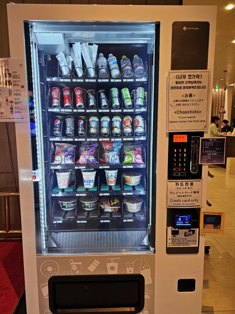 On the ground floor of Solaria Nishitetsu Hotel Busan, guests will also find a vending machine corner, where simple snacks like cup noodles, soft drinks, and bottled tea are available 24/7. It’s a convenient option when you return late or simply want a quick bite without leaving the building. During my stay, this corner was surprisingly useful—after a long day of walking or sightseeing, grabbing an instant ramen and enjoying it quietly in my room made for the perfect low-key dinner.