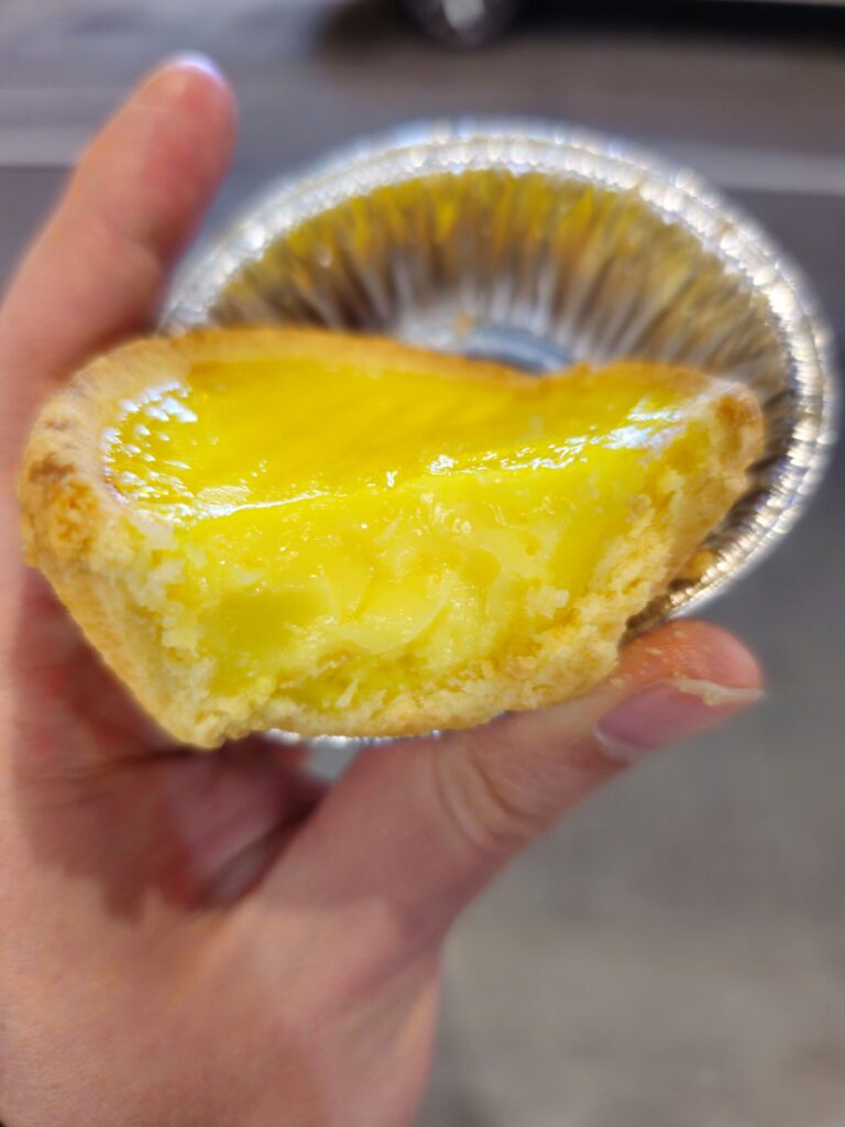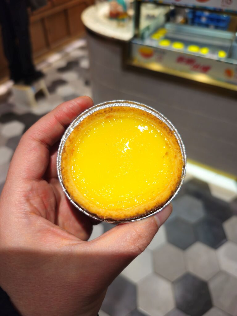 One egg tart is the minimum experience — enough to assess the quality and decide whether you want more. Two is the appropriate amount for most visitors: one to eat immediately outside the shop, one for the walk.