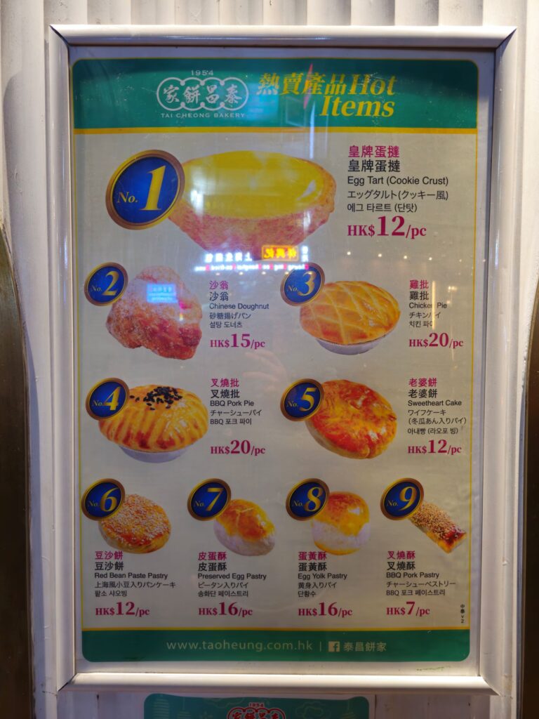 Tai Cheong: The original. The establishment that most people mean when they say “Hong Kong egg tart.” The shortcrust style that the tradition is built on. Standing outside on Lyndhurst Terrace eating a warm tart with the Governor Patten photograph visible through the window.