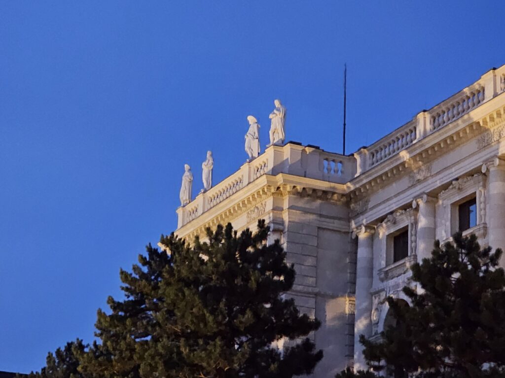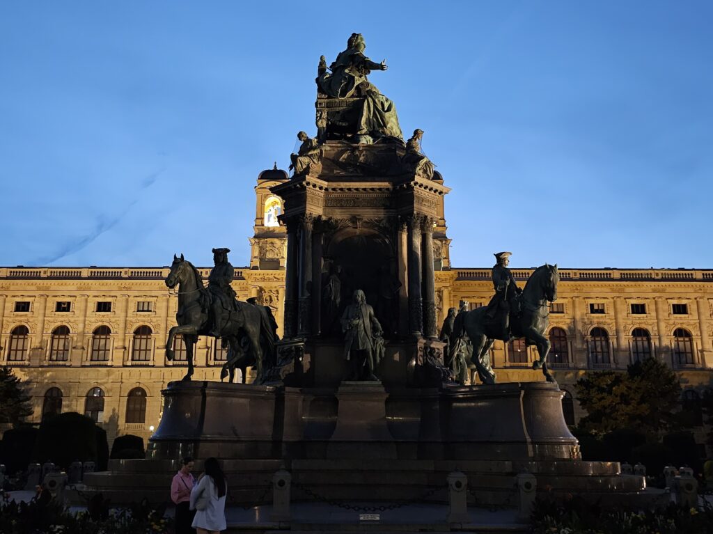 Watching the sunset behind the Kunsthistorisches Museum was a scene I will never forget. The massive dome and statuary atop the roof created striking silhouettes against the fading light. The Maria Theresa Memorial, now bathed in soft shadows, took on a more intimate, contemplative presence. Despite the crowds, there was an unmistakable sense of peace.