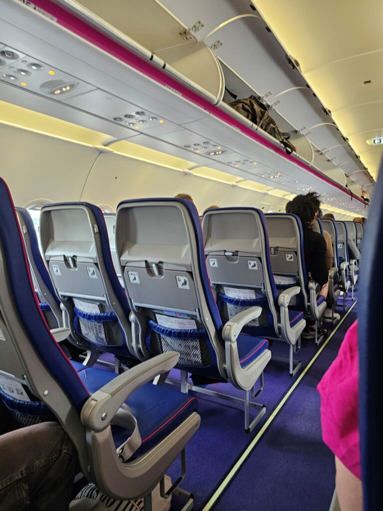 The Airbus A321neo operating the route was modern, sleek, and clearly well-maintained. The seating configuration was standard for low-cost European carriers—3-3 across, without personal screens or USB ports. I was seated near the rear of the aircraft, and at 179 cm tall, I did notice that the legroom was a bit snug. That said, it wasn’t uncomfortable for the short duration of the flight. My knees didn’t press against the seat in front, and I had enough space to sit without feeling claustrophobic.